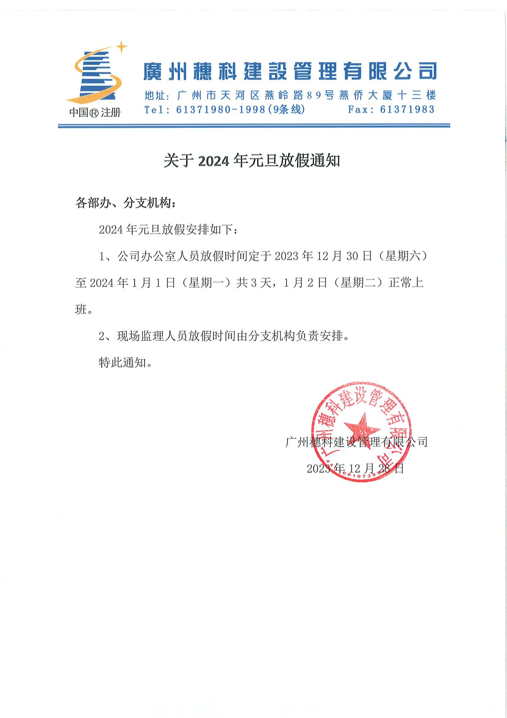 上一篇:關(guān)于2024年春節(jié)放假通知